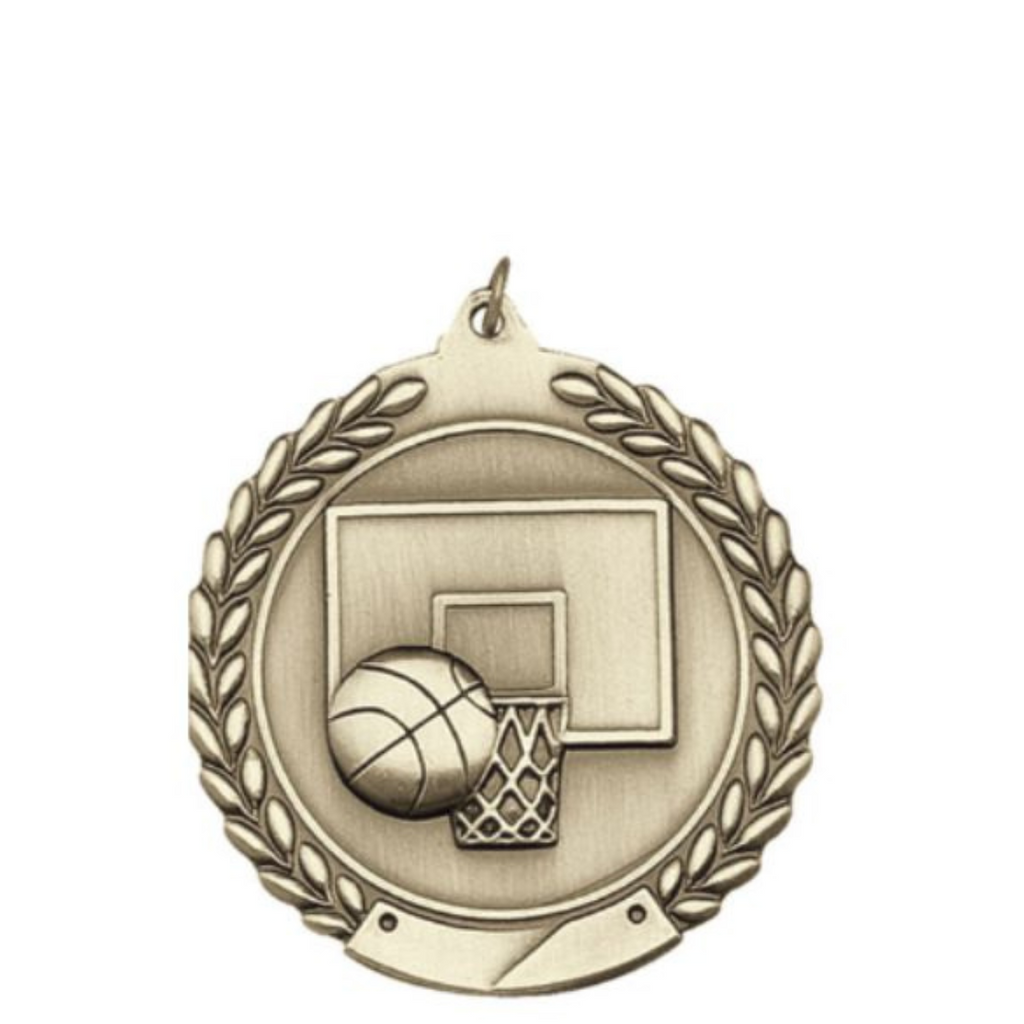 Our 2.75" Wreath Cast Medallions are available in a variety of sports/events and offered in gold, silver or bronze.